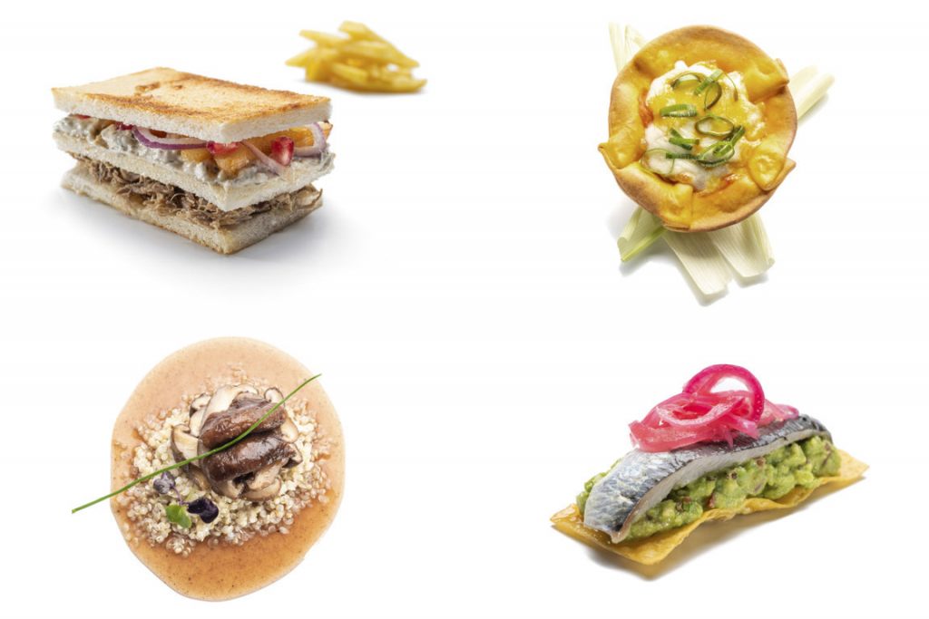 Del oasis del desierto también beben los boquerones de ‘boqueabierto’ (Lacaña – Santa Isabel, 50), rellenos con sedosa mezcla de ajo, perejil, cilantro, cebolla, salsa de harissa, comino y lima, rebozada con harina de garbanzos y huevos. Se acompaña de humus de zanahoria. “Su relleno cautivará al jurado”, señala la chef Nadia Belaid, autora de esta tapa sin gluten ni lactosa.