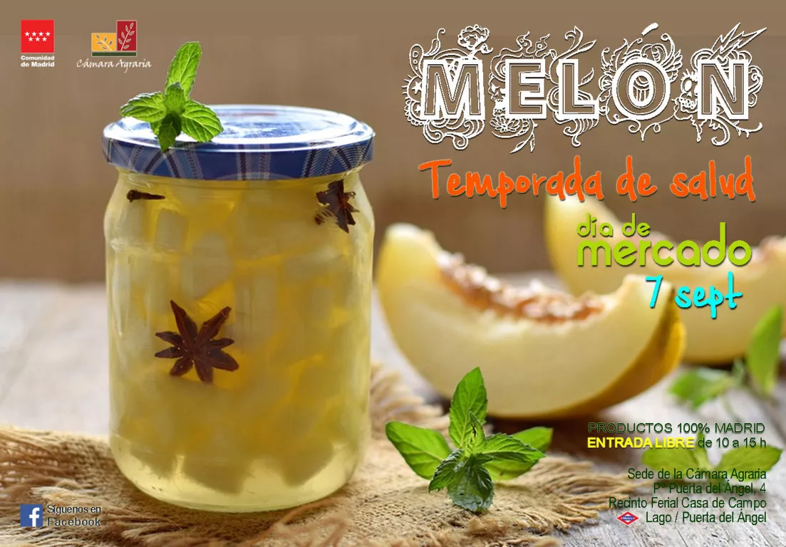 productos frescos, saludables y a un precio estupendo asistiendo al Día de Mercado de la Cámara Agraria de Madrid, que tendrá lugar el sábado, 7 de septiembre, de diez de la mañana a tres de la tarde en la Casa de Campo de Madrid, y donde la estrella de la jornada será, sin ningún género de duda, el Melón de Villaconejos que, aunque le solemos llamar fruta porque es ideal como postre, en realidad es una hortaliza de la misma familia que el pepino, la calabaza o el calabacín, pudiéndose tomar también en sopa o acompañado de alimentos salados.