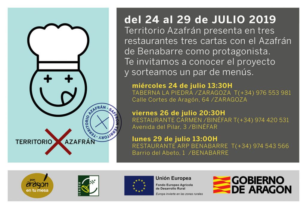Estos menús son el resultado del trabajo de productores, investigadores, chefs y comercializadores con el ingrediente principal del azafrán de Benabarre en el marco de proyecto piloto » Territorio Azafrán». Los menús estarán a disposición de los clientes a partir de las fechas de las presentaciones y cada restaurante sorteará dos menús.