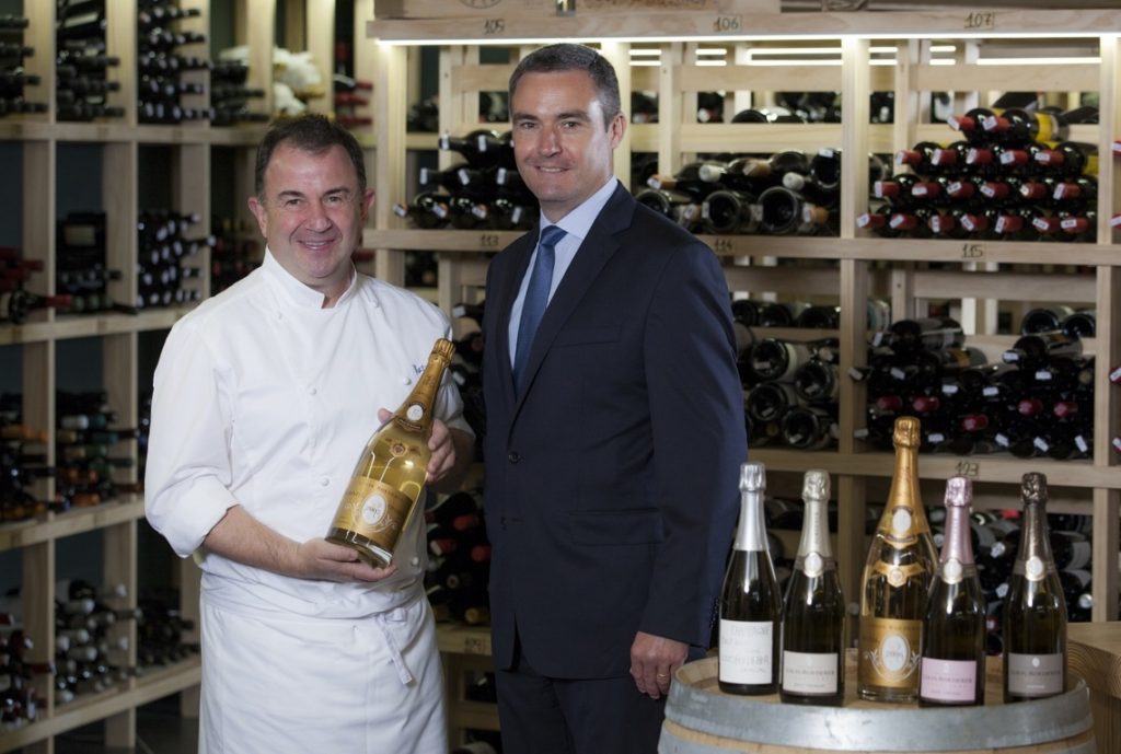 La prestigiosa Maison de Champagne Louis Roederer ha anunciado su alianza con Martín Berasategui, el chef con más estrellas Michelin de España, por la que el restaurante 3 estrellas Michelin Martín Berasategui de Lasarte (Guipúzcoa) se convierte en embajador oficial de Louis Roederer en España. En la imagen, el cocinero vasco junto a Stéphane Richer, Export Manager de Louis Roederer.