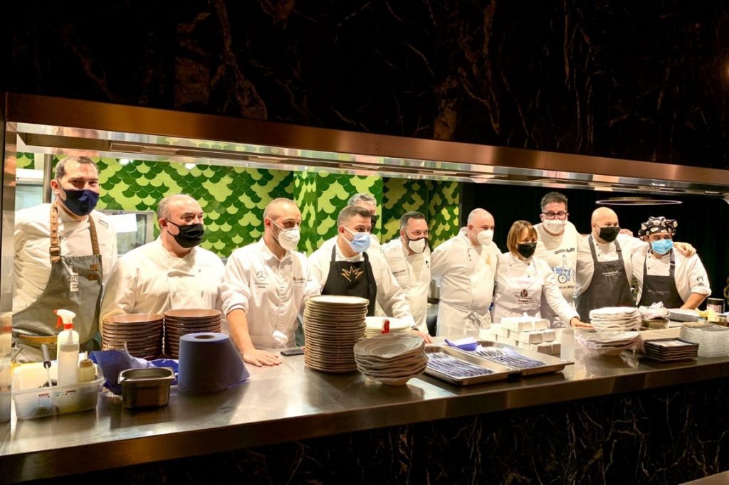 Nazario Cano, chef de Odiseo, fue el promotor de un menú a 18 manos que reunió en Murcia a grandes cocineros procedentes de toda España para apoyar la región y la iniciativa Murcia Capital Gastronómica 2021. Ade Bueno de Rincón de Pepe, María José San Román de Monastrell, Miguel Barrera de Cal Paradís, Tomás Écija de El Albero y La Maita, José Carlos Fuentes de Club Allard, Miquel Ruiz de Elbaret de Miquel, David López de Local de Ensayo, Ricardo Sotres de El Retiro y Nazario Cano de Odiseo como anfitrión protagonizaron el primer gran acto culinario del nuevo e imponente centro de ocio y gastronomía de la ciudad de Murcia.