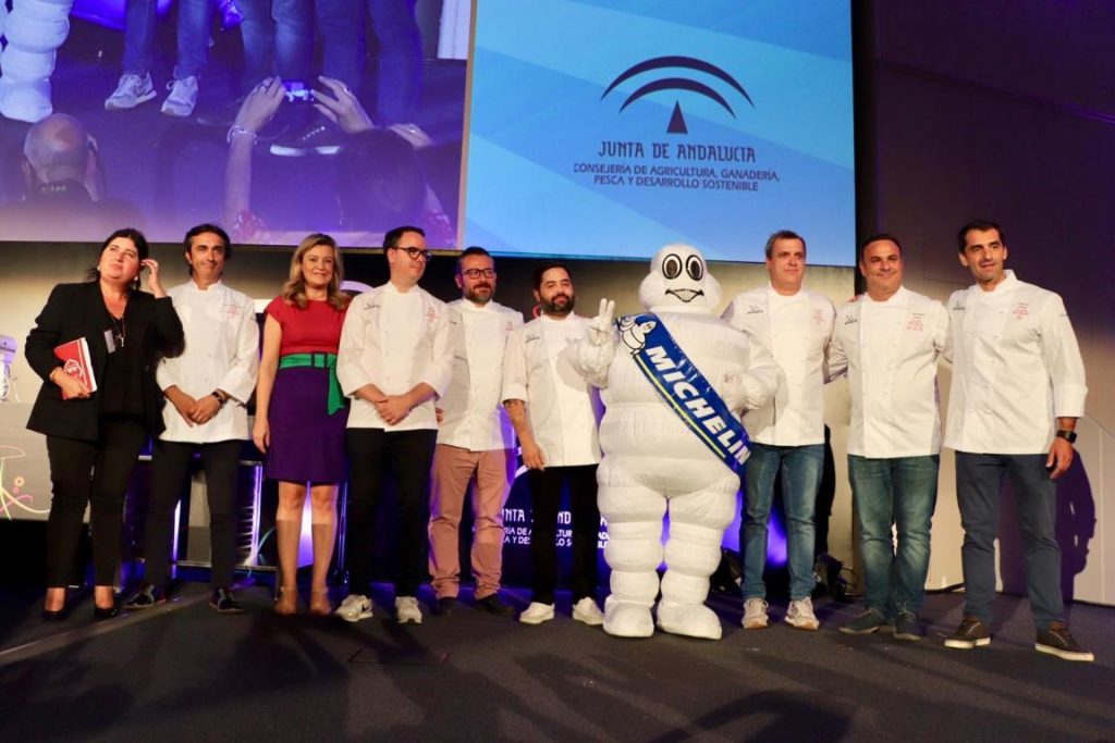 El escenario del Congreso Gastronómico Andalucía Sabor ha acogido la presentación del equipo de cocineros encargados de la elaboración de la cena de gala que tendrá lugar el próximo día 20 de noviembre en Sevilla, con motivo de la presentación de la Guía Michelin España&Portugal 2020. El acto ha contado con la participación de Mayte Carreño, directora comercial de Michelin Travel Partner, y de la directora general de Industrias, Innovación y Cadena Agroalimentaria, Cristina de Toro, quien ha destacado este encuentro como una ”importante cita de la alta gastronomía” donde se debate “sobre nuestra cocina, su idiosincrasia y el inestimable papel que juegan los profesionales de la gastronomía, como impulsores de la excelencia que caracteriza a las producciones agroalimentarias y pesqueras de Andalucía”.