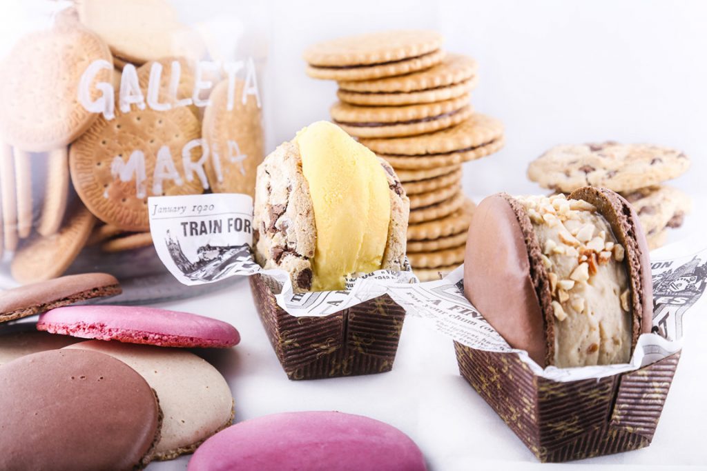 El primer paso para disfrutarlo es elegir un tipo de galleta, después un sabor de helado y por último un sirope. Las combinaciones hoy en día son infinitas (así que no es tan fácil como parece): galletas María o Príncipe, cookies, macarons de fresa o chocolate; helado de chocolate, limón, turrón, mantecado, pistacho, maracuyá, dulce de leche, mango… y rematado con sirope de caramelo, chocolate o leche condensada.