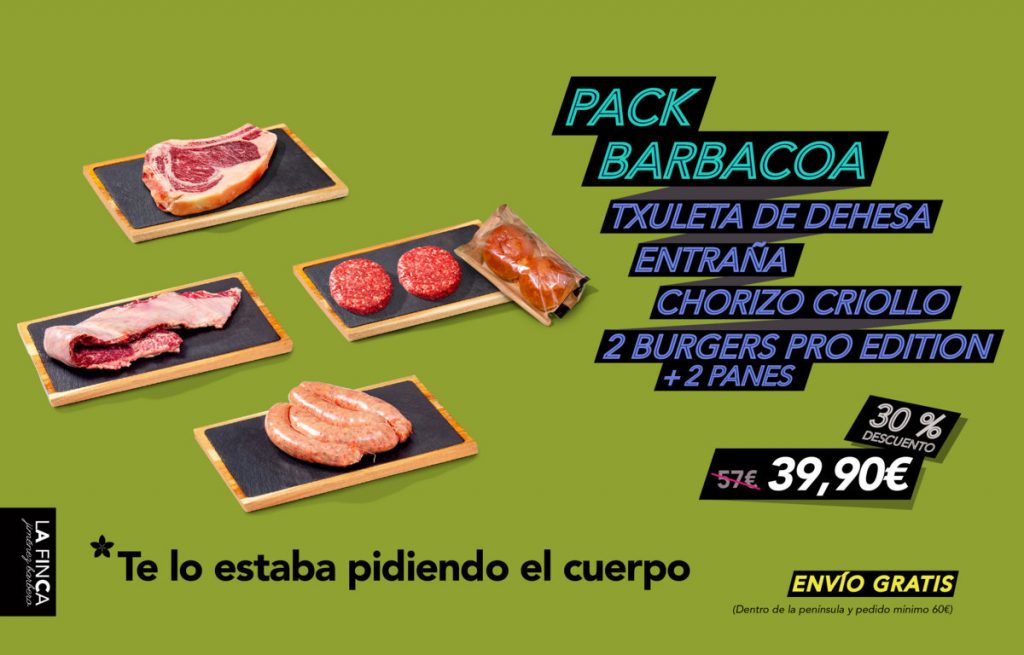 Las mejores parrillas se realizan con cortes nobles como el chuletón o una pieza de lomo alto. También son famosos los cortes argentinos como la entraña o el churrasco (asado de tira) por su jugosidad. Y no puede faltar una buena hamburguesa. El nuevo Pack Barbacoa de La Finca es un poco de todo esto.