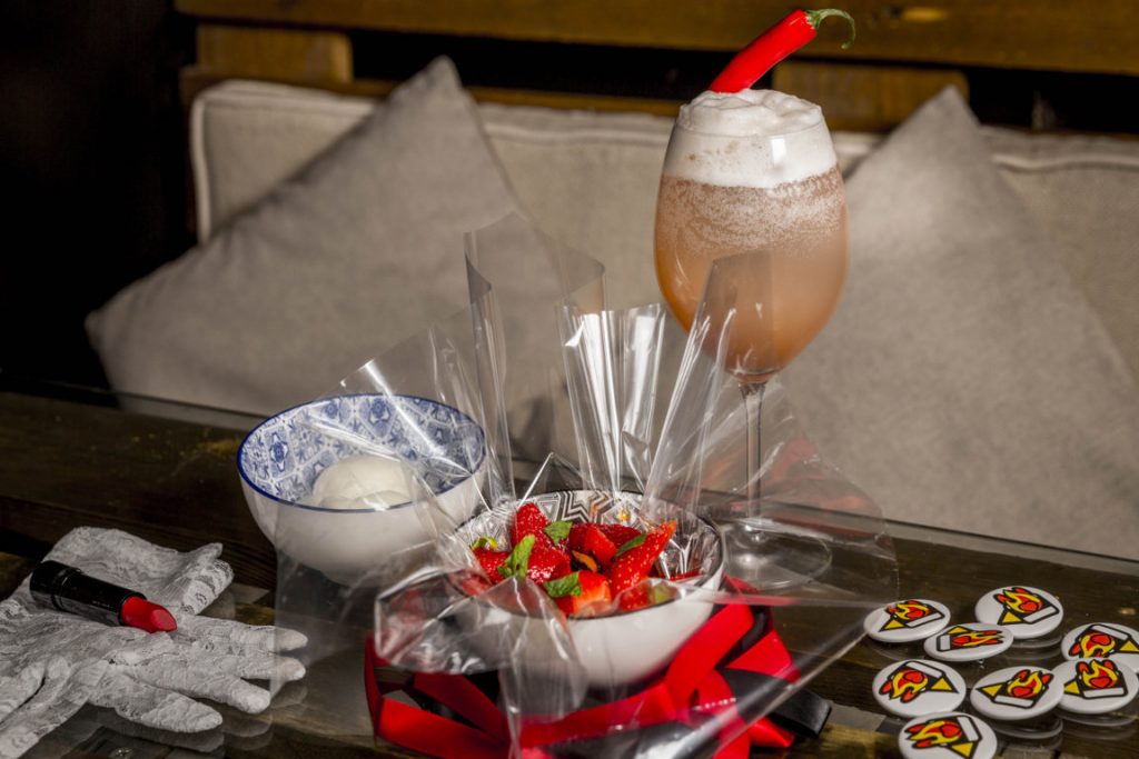 La mezcla de las siempre exóticas fresas con una selección de especias como curry madroca (afrutada y algo picante) y shishimi toragashi (guindillas molidas, cáscara de mandarina tostada, semillas de sésamo, pimienta japonesa, alga nori y jengibre) hacen que este postre, con un punto afrodisiaco, sea el final perfecto para una velada de lujuria gastronómica.