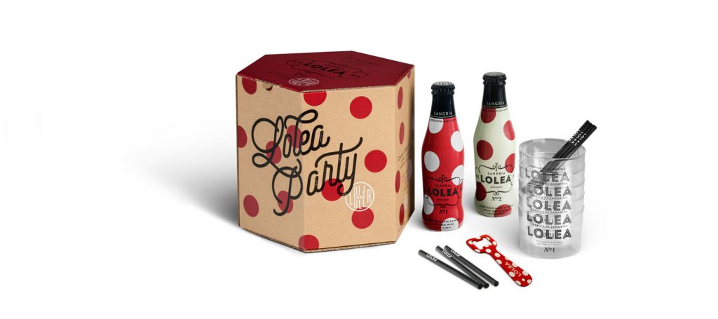 Continuando la estética que caracteriza a Lolea, esta edición especial está decorada con los clásicos lunares rojos de la marca. Un estético diseño que guarda en su interior un total de ocho botellines. Cuatro de Lolea Nº1, una sangría artesana elaborada con vino tinto Tempranillo y Cabernet Sauvignon, y cuatro de Lolea Nº2, realizada con vino blanco Macabeo y Chardonnay.