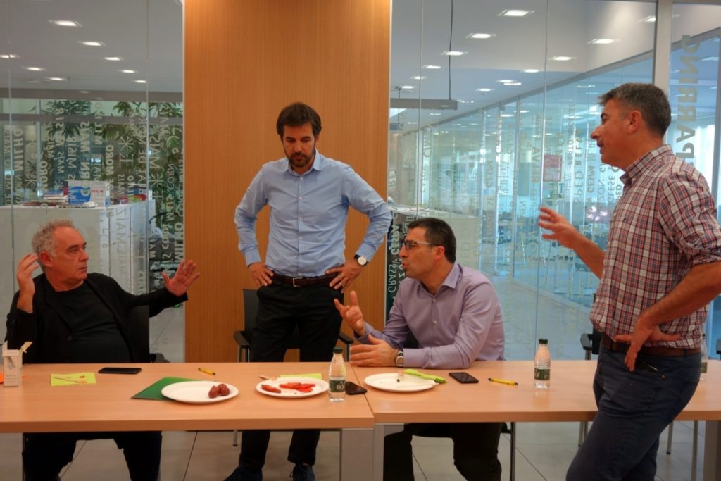 El libro Sapiens del tomate conecta el conocimiento y ofrece una visión global del fruto más producido y mejor valorado en todo el mundo. Tras 140 años de especialización en semillas hortícolas, Semillas Fitó apuesta por la pedagogía del tomate desde las semillas. En la imagen, Ferran Adriá, junto al equipo de Semillas Fitó, durante la elaboración del libro.