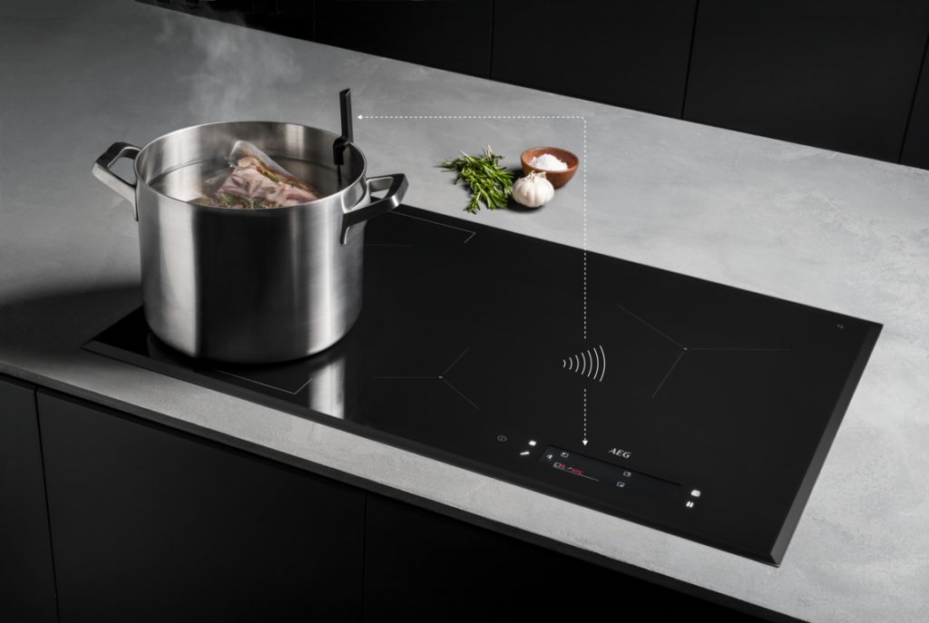 AEG presenta SenseCook, la línea de cocción asistida más avanzada en placas de inducción que permite un control absoluto del tiempo y temperatura para cocinar con absoluta precisión. Esta línea está compuesta por tres familias de placas de inducción equipadas con sensores muy avanzados para garantizar que todo esté perfectamente controlado: SenseFry proporciona la temperatura y el tiempo adecuados para que la carne siempre esté hecha al gusto; SenseBoil detecta las vibraciones de las burbujas al ebullir el agua y baja la temperatura automáticamente para evitar derrames y SensePro que permite un control absoluto del proceso de cocción gracias a la sonda térmica, única en el mercado.