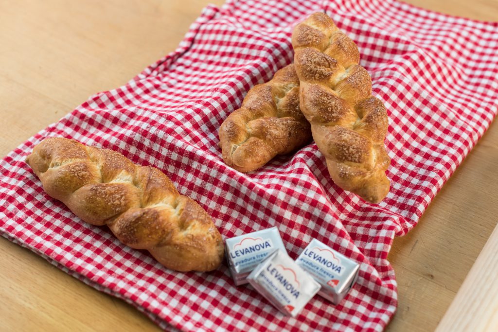 Transcurrida la hora de reposo, enharinamos una superficie plana, como puede ser la encimera de nuestra cocina y, con ayuda de un rodillo, extenderemos la masa y la cortaremos en tiras. Con esta forma, rodaremos los trozos sobre sí mismos hasta obtener “rulos”. Seguidamente, será el momento de dar a nuestro pan de leche una forma especial. Para ello, lo trenzaremos cogiendo los rulos que previamente hemos hecho de tres en tres. Dejamos reposar las trenzas sobre la bandeja del horno durante 25 minutos, hasta que su tamaño se duplique.
