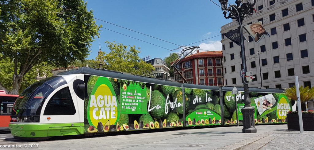 La Organización Mundial del Aguacate (WAO, por sus siglas en inglés) sigue expandiendo su alianza con la Guía Michelín y colaborará por primera vez en la próxima edición para España y Portugal de 2020.  WAO ha participado ya en la gala de la Guía para Francia, en la ceremonia de Gran Bretaña e Irlanda y recientemente en la edición de California. El aguacate, La fruta de la vida, gracias a sus propiedades y características únicas, se ha convertido en el primer producto agrícola no procesado en conquistar la publicación en sus 119 años de vida. Para celebrarlo, el aguacate ha protagonizado un excelente menú monográfico de Josean Alija en Nerua Guggengeim Bilbao, una estrella Michelin. WAO también ha vinilado una línea del tranvía de Bilbao (en la imagen).
