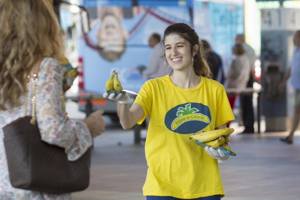 Más de un millón de personas que circulan cada día por estas estaciones de metro madrileñas se están encontrando con varios stands de plátano de Canarias en los que se estará entregando tanto información como producto para que los pasajeros puedan empezar el día disfrutando del sabor de un plátano de Canarias.