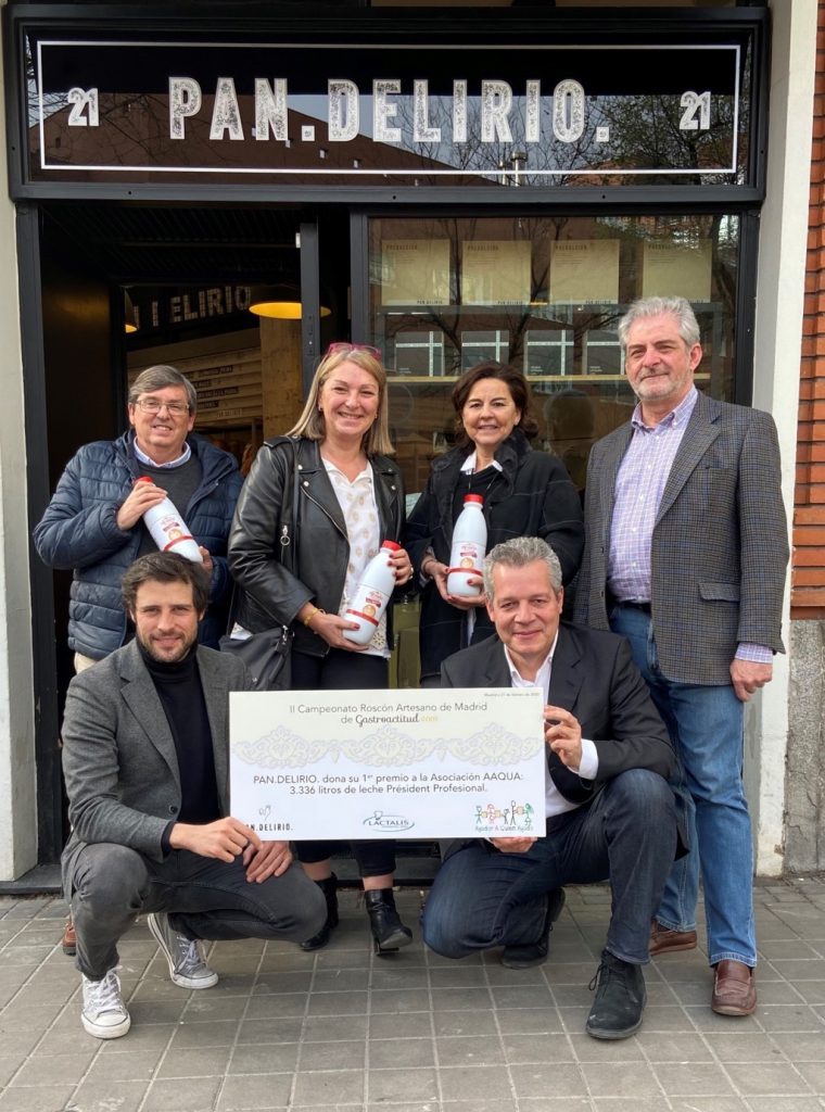 El obrador madrileño Pan.Delirio entregó a la asociación Aaqua (Ayudar a Quien Ayuda) más de 3.000 litros de leche entera Président Profesional, que obtuvo como ganador del II Campeonato de Roscón artesano de Madrid, celebrado el pasado mes de diciembre. Los beneficiados serán los miles de personas y familias sin recursos que atiende la asociación en más de 70 centros sociales.