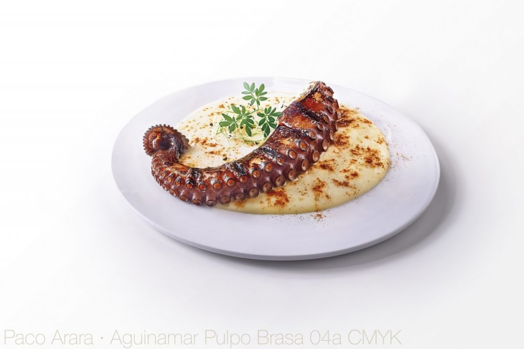 Incorporar en nuestra dieta diaria el pescado, complementarlo con guarniciones saludables y consumir marisco sin miedo a su precio son algunas de las recomendaciones que nos ofrecen desde Aguinamar. En la imagen, su pulpo a la brasa.