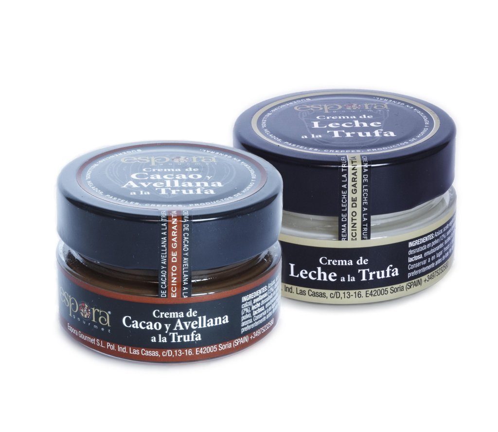 Para los más golosos de la casa Espora Gourmet ha preparado un manjar donde se une ese sabor de la infancia como es la crema de cacao y la crema de leche con un toque especial de trufa negra. Se presenta en dos formatos: por un lado, una crema de cacao y avellanas y por otro una crema de leche (sin nada de cacao). Unos productos ideales para acompañar con creppes, galletas, pasteles y helados y para cualquier postre realizado al horno. Sólo apto para golosos sibaritas. Envase de 150 gr. Precio 7,70€