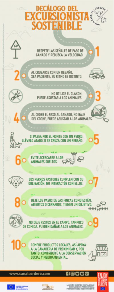 La Interprofesional Agroalimentaria del Ovino y Caprino, Interovic, ha sido la encargada de ejercer de portavoz para un sector que reivindica una conducta responsable y sostenible a los viajeros que van a visitar la España vaciada. Gestos y actitudes cuyos beneficios van desde la contribución a la conservación del medio ambiente rural hasta la prevención de accidentes mortales de tráfico. Ha reunido en diez consejos las recomendaciones de los hombres y mujeres que pasan su día a día recorriendo los campos y montes con sus rebaños de ovejas y cabras, generando economía rural y social en lugares en los que no hay muchas más alternativas.