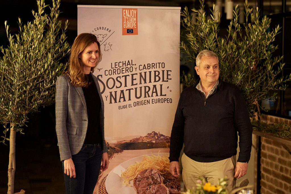 Interovic, la Organización Interprofesional de la carne de Ovino y Caprino de España, ha presentado un nuevo tipo de carne madurada que supone una importante novedad en sector cárnico. Se trata de carne de ovino de larga maduración. Una carne que se madura entre 30 y 60 días en una cámara especial en la que se controlan la temperatura (entre 1 y 3 ºC) y la humedad (entre el 65% y el 85%) que deben mantenerse constantes para lograr piezas con una alta concentración de sabores. La carne fue presentada en el curso de una cena clandestina que tuvo como escenario el Mercado de Chamartín de Madrid, en la que ofició como chef Fernando del Cerro, con sede en Casa José de Aranjuez, quien se reveló como el gran maestro del «ovino reposado». En la imagen, Beatriz Casares, directora de Comunicación, y Tomás Rodríguez, coordinador de Interovic, durante el cuidado evento de presentación, que contó con la colaboración de Raza Nostra, prestigiosa carnicería, defensora de las razas autóctonas, presente en el Mercado de Chamartín.
