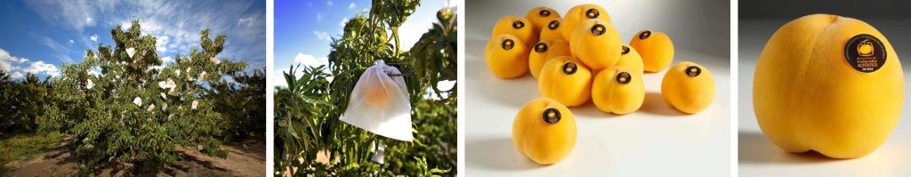 Además de las privilegiadas características que le concede la tierra, la excelencia del Melocotón de Calanda radica en su cuidadoso y artesanal sistema de cultivo, basado en dos singulares técnicas. En primer lugar, se realiza un doble aclareo intensivo del árbol hasta eliminar el 70% del fruto, dejando una distancia mínima de 20 cm entre cada melocotón. Esto asegura un fruto más voluminoso y carnoso, con un calibre excepcional de 73 mm de diámetro mínimo. Más tarde, durante el mes de julio, se procede al embolsado manual e individual de cada melocotón –¡cerca de 250 millones de unidades por cosecha! –, permaneciendo así hasta su recolección, dos meses después. Esta operación protege al fruto de agentes externos y del efecto de productos fitosanitarios, logrando que sean, además de deliciosos, mucho más puros y sanos.