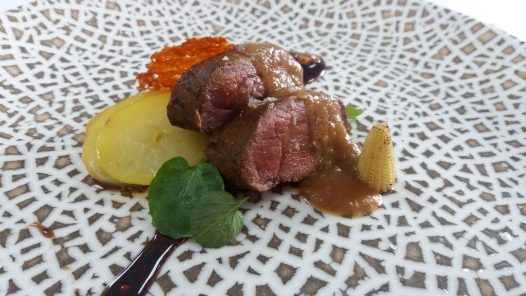 Al día siguiente, y en línea con la vertiente gastronómica del viaje, los invitados acudieron a la Escuela de Hostelería de Toledo, donde Asiccaza estaba llevando a cabo una masterclass de Carne Silvestre para los alumnos, en la que quedó patente la labor docente de la Interprofesional.  Javier Chozas, director de Cocina de la Escuela, y uno de los grandes expertos en la cocina de la carne de caza en nuestro país, preparó, con la ayuda de sus alumnos, diversos platos con distintas piezas de Carne Silvestre, como un consomé de perdiz y tartar de ciervo, albóndigas de paloma con salsa thai, taco de pato confitado o jabalí asado con hortalizas de temporada, que fueron extraordinariamente valorados por la prensa francesa tras su degustación. Por la noche, y con Toledo como telón de fondo, los periodistas disfrutaron de una sabrosa cena en el restaurante Adolfo, uno de los más prestigiosos de la ciudad, donde también pudieron probar varios platos de Carne Silvestre.