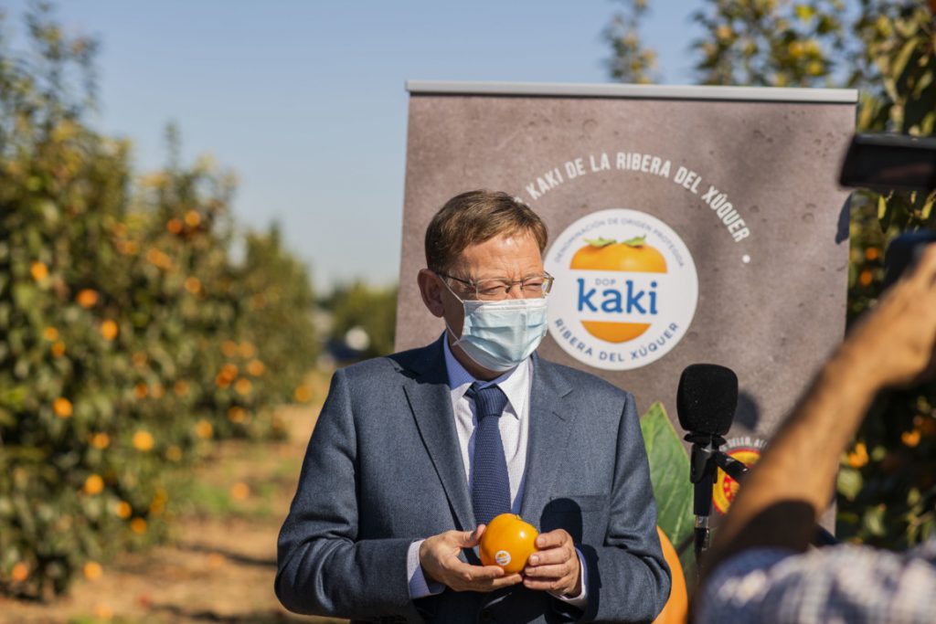 Las máximas autoridades de la Generalitat valenciana (en la imagen, su presidente, Ximo Puig) descubren sobre el terreno cómo se está llevando a cabo la campaña. La estacionalidad del Kaki con Denominación de Origen Protegida es una de las más esperadas del año. Los aficionados a esta variedad ya pueden disfrutar de ella al ir identificada bajo la marca colectiva Persimon.