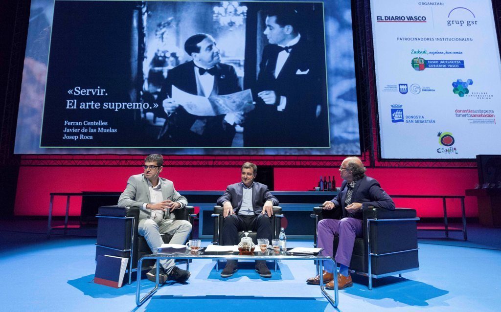 “El director de sala más importante del mundo de los últimos 50 años” ha recibido el IX Premio Gueridón de Oro. Josep Roca ha entregado la distinción que Gastronomika dedica al mundo de la sala y el vino a Louis Villeneuve (Hotel de Ville, Lausanne, Suiza), a quien ha loado también el presidente de la Real Academia Española de Gastronomía, Rafael Ansón: “Villeneuve ha hecho felices a los clientes durante muchos años”. La felicidad de los clientes ha sido igualmente reconocida en el coloquio “Servir, el arte supremo”, donde Javier de las Muelas, Josep Roca y Ferran Centelles han resaltado la infravalorada importancia de la sala en un restaurante (“y las historias de amor y amistad que en ella se fraguan”) detallando cómo “mimar los pequeños detalles para completar la experiencia”. Los tres han homenajeado a su manera al “gran revolucionario” de la sala en España: Juli Soler. La sala presidía el día.