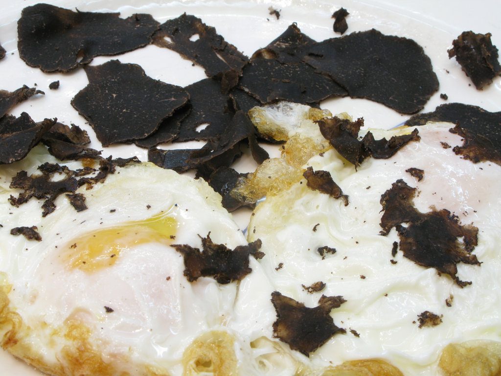 Entre las sugerencias de temporada del restaurante de la calle Jorge Juan de Madrid no faltan maravillas como la Sopa de trufa, la Rebanada de pan caliente con mantequilla y trufa, los huevos fritos de corral con su puntilla y trufa negra (en la imagen) o el Carpaccio de trufa. La Tuber melanosporum será la protagonista de muchos de los platos de la casa hasta finales de febrero.