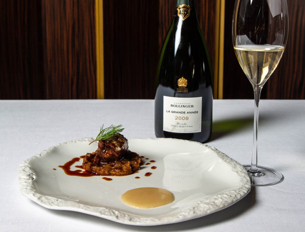 La Maison francesa Bollinger ha querido homenajear la fiesta madrileña con la elaboración de un menú exclusivo creado por Aurelio Morales, chef del restaurante CEBO (Carrera de San Jerónimo, 34. Madrid). Para esta ocasión, se han seleccionado tres referencias de champagne Bollinger con las que acompañar la propuesta culinaria: La Grande Année 2008, Special Cuvée y Rosé, que maridan a la perfección con los diferentes platos que componen el menú. La propuesta, elaborada en exclusiva para la casa francesa, consta de siete platos y dos postres, inspirados en la cocina castiza y que podrá degustarse con las diferentes referencias propuestas por Bollinger. En la imagen, jarrete de vaca del Guadarrama y ropa vieja, una de las recetas «isidriles».