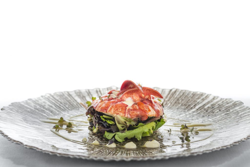 Ensalada de bogavante con mahonesa de almendras y aceite de naranja