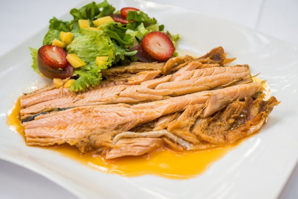 El escabechado es un una elaboración muy clásica, es el ‘confitado’ de la antigüedad, la forma que tenían para conservar los alimentos… Una técnica tan maravillosa, que nosotros seguimos utilizando hoy en día. Pero no nos vamos a engañar, no es lo mismo comerse un escabeche de lata -sin despreciarlos, que los hay muy buenos-, que un escabeche casero, sea de lo que sea. Más tentador resulta aún si se trata de escabechados como los que prepara María Luisa Banzo en su restaurante La Cocina de María Luisa (Jorge Juan, 42. Madrid. Tel. 91 781 01 80. www.lacocinademarialuisa.es). Por ejemplo, la Trucha de La Fuentona escabechada de la imagen.