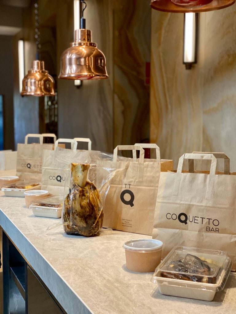 Siguiendo uno de los pilares fundamentales de su proyecto, la sostenibilidad, CoquettoGo ha optado por llevar a cabo sus envíos en envases biodegradables, y mediante una empresa de reparto, independiente y sostenible, que llevará los pedidos en bicicleta y coches eléctricos en todo Madrid. Todos los encargos se podrán hacer a través del teléfono que viene indicado en su página web www.coquettobar.com y mediante la aplicación de WhatsApp. Así mismo, para garantizar la excelencia en todos los pedidos, estos deberán hacerse antes de las 10 de la mañana, a excepción del cochinillo, que deberá hacerse con una antelación de 24h.
