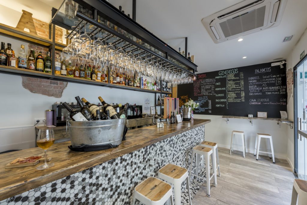 El madrileño barrio de Retiro acoge un nuevo lugar de peregrinaje gastronómico y vinícola, la taberna Zalamero (Narváez, 67. Madrid), un espacio con firma de los sumilleres Ana Losada -ex La Chula de Chamberí- y David Moreno. En la imagen, la barra de Zalamero.