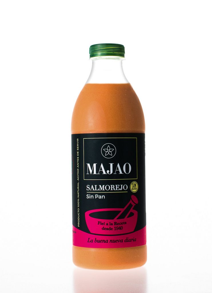 Majao lanza al mercado su salmorejo sin pan, con un sabor intenso y una textura deliciosa, ya que al no llevar pan es perfecto para todos aquellos que no pueden o no quieren tomar gluten. Majao también elabora el gazpacho con más historia de cuantos se hacen en nuestro país, fue en 1982 la primera vez que Majao puso su gazpacho y su salmorejo dentro de una botella. Se presenta en diferentes formatos: de 1 litro y 33 cls.