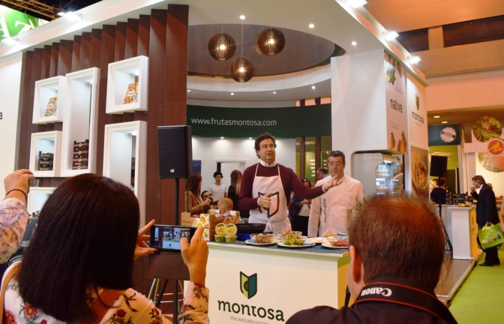 Durante la celebración de la Feria Internacional del Sector de Frutas y Hortalizas (Madrid), Fruit Attraction, los chefs Samantha Vallejo-Nágera y Pepe Rodríguez (en la imagen) han realizado, en el stand de Frutas Montosa, dos showcookings con el producto estrella de la compañía, la salsa de mango. Este es el décimo año que la firma malagueña, líder en la venta de subtropicales, ha estado presente en este certamen. Con estas iniciativas su gran apuesta es dar a conocer la salsa de mango en la cocina y, sobre todo, innovar en nuevas recetas.