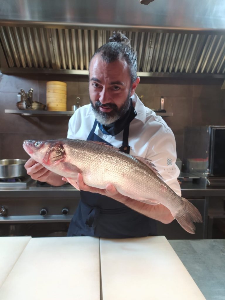 Brasa bajo distintos cortes, fritura, encurtida, en crudo, en escabeche y al pil pil son algunas de las elaboraciones que ha mostrado el chef de Estimar con un solo producto: lubinas Aquanaria criadas en el Océano Atlántico cerca de la Isla de Gran Canaria.