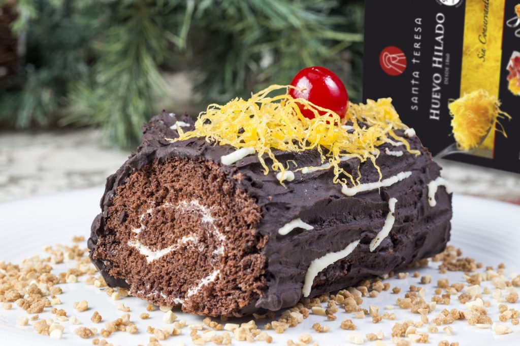 Ante unas Fiestas muy distintas, el Huevo Hilado Santa Teresa, el único fresco del mercado, nos invita a disfrutar de la mejor gastronomía aportando sabor y tradición a nuestros menús navideños. Tanto el Huevo Hilado como el Huevo Hilado Trufado están elaborados a partir de huevos frescos seleccionados y según la receta tradicional propia de pastelería artesana. En la imagen, tronco de chocolate con Huevo Hilado Santa Teresa.