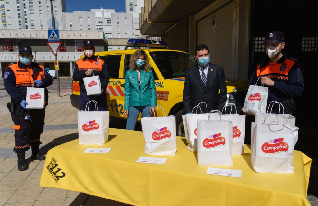 Durante estos días, el personal sanitario del Hospital Universitario de Burgos, los servicios de emergencia y protección civil y las Fuerzas de Seguridad del Estado de la ciudad, recibirán bolsas con ‘snacks’ aportados por diferentes marcas, incluyendo jamón curado de Navidul; mini fuets de Snack-in de Campofrío; aceite de oliva y aceitunas rellenas de anchoa de Grupo Ybarra Alimentación; picos de Panificadora Andrés; triturado de frutas de Campofrío HealthCare y una botella de agua Bezoya de Calidad Pascual.