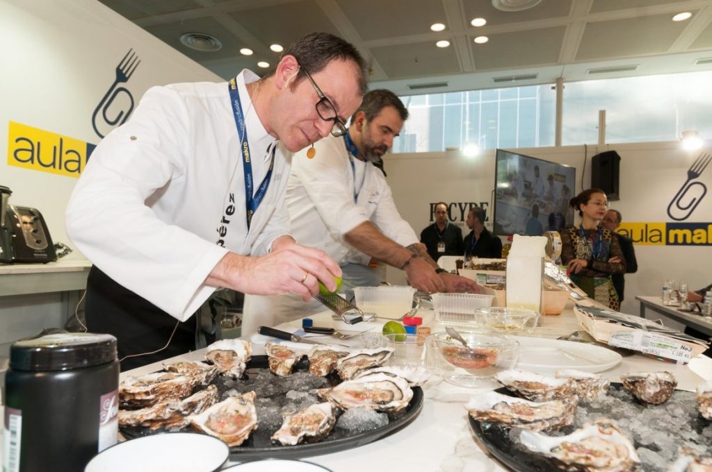 Ostras Sorlut celebró, con gran éxito de asistencia, dos talleres en el curso de Madrid Fusión. Tuvieron como escenario el Aula Makro y sirvieron para reivindicar la calidad de estas ostras cuyo cultivo se realiza en la costa francesa de la región de Charente-Maritime, y que gozan de gran predicamento entre los cocineros. En la imagen, Enrique Pérez, de El Doncel de Sigüenza (Guadalajara) durante uno de los talleres.
