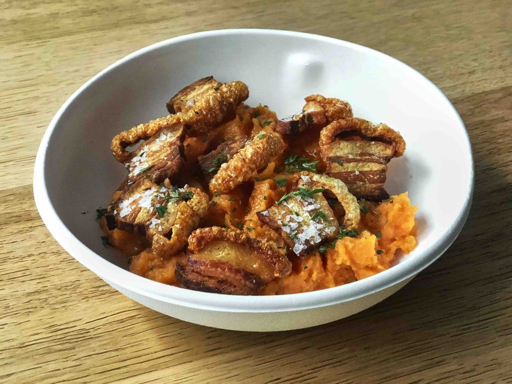 TrasTo, restaurante de cocina castellana con influencias viajeras, lanza una carta diseñada especialmente para prestar servicio de comida para llevar a domicilio o para recoger en el local de Valladolid (Trasto&Go). La carta consta de 21 platos y dos menús cerrados. Los pedidos se pueden hacer a través de la web del restaurante Trasto y whatsapp en el teléfono 646962745. En la imagen, las patatas revolconas con torreznos, una de las ofertas de la casa.