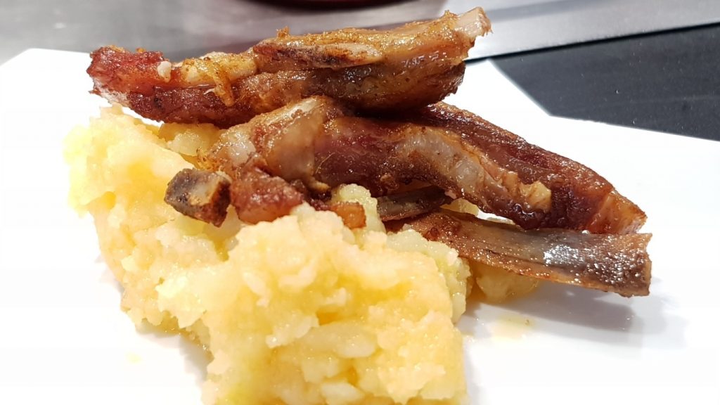 Churrasquito de cordero y patatas revolconas