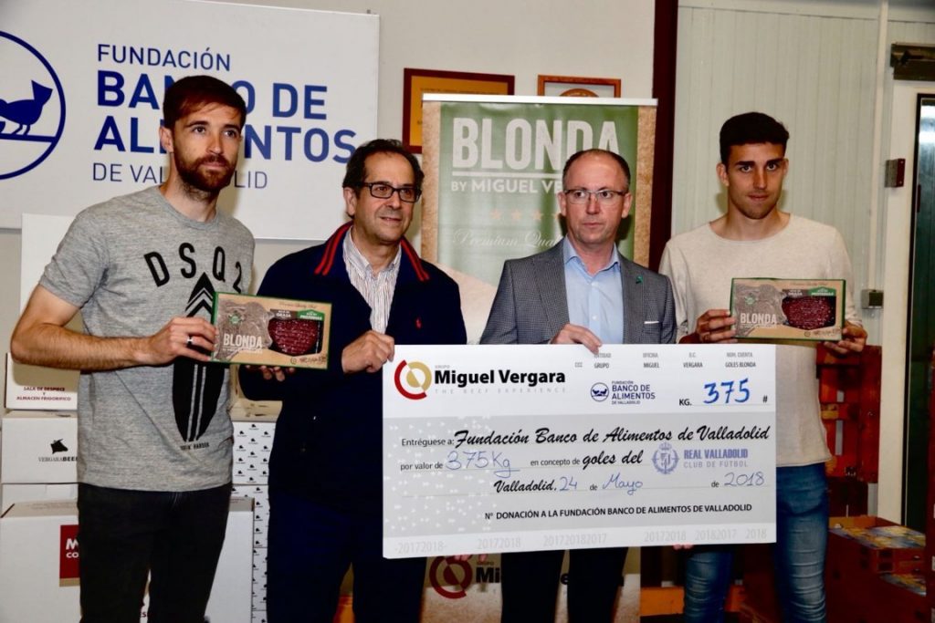 En virtud del acuerdo firmado entre la Fundación Real Valladolid y Grupo Miguel Vergara, las dianas del equipo blanquivioleta ya se han convertido en 665 kilogramos de carne que la compañía castellana y leonesa ha donado a la Fundación Banco de Alimentos de Valladolid.