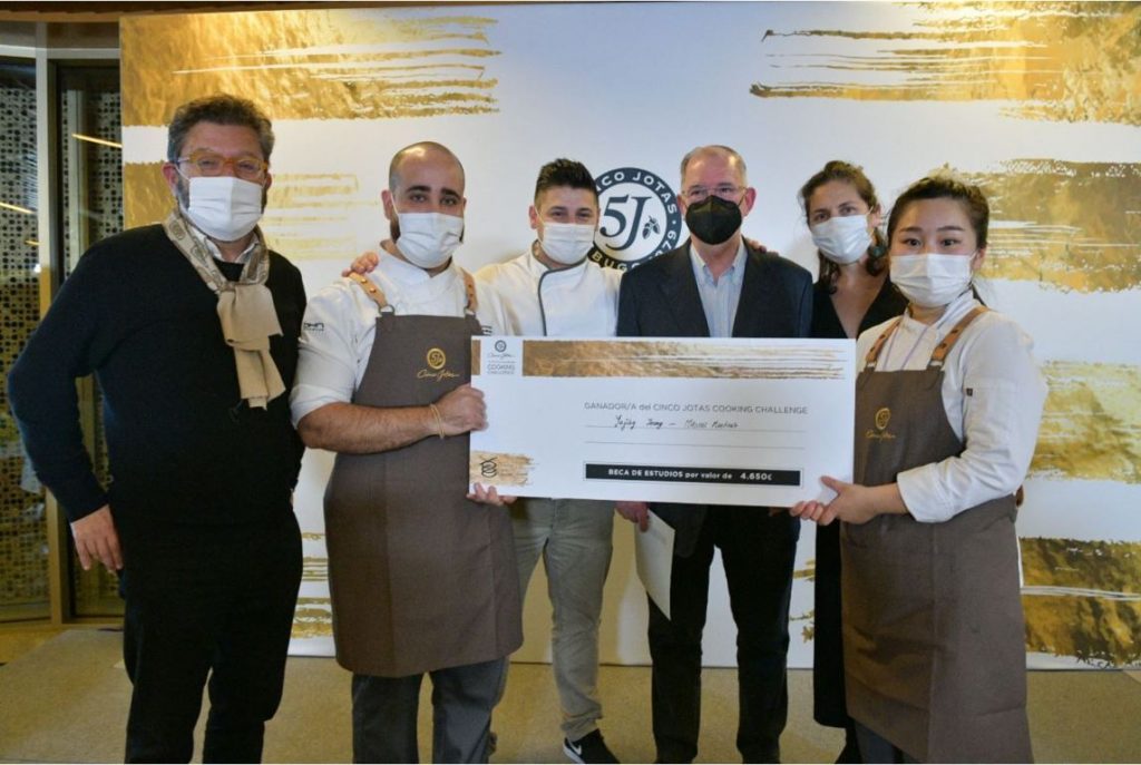 La final, fue tan reñida que, tras mucho debatir, el jurado no encontró un único ganador, sino un empate entre los dos finalistas. Por ello, y, por primera vez en la trayectoria de las cinco ediciones celebradas de este certamen, la marca decidió hacer el esfuerzo y duplicar el premio, otorgando dos becas de estudios en Basque Culinary Center. El jurado, presidido por el reconocido chef Pedro Subijana, el periodista Mitxel Ezquiaga, el profesor de Basque Culinary Center Adrián Leonelli y la directora de Comunicación de Cinco Jotas, María Castro, destacaron la excelencia en el nivel de todos los finalistas de este año, superior al de los anteriores. El plato de Yejin Jeong despuntó por su originalidad y dificultad de ejecución y el de Marcos Martínez por la buena ejecución e integración de los productos Cinco Jotas.