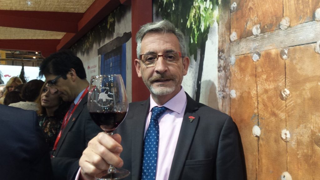 La Denominación de Origen Valdepeñas acabó 2016 con buenos resultados sobre las ventas de sus vinos fuera de España. Las cifras hablan de más 31,2 millones de botellas vendidas en el exterior; lo que representa un aumento del 4,42% respecto al año anterior. En la imagen, su presidente, Jesús Martín, brindando en Fitur.
