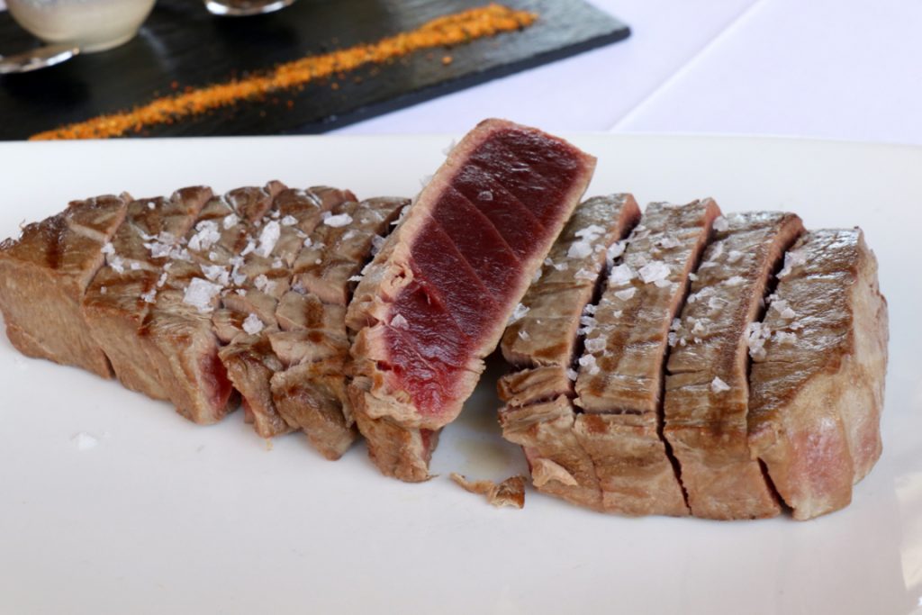 Un sencillo y excelente lomo de atún rojó Balfegó bien preparado y presentado se puede convertir en un éxito rotundo. Es el llamado Chuletón de Mar de la imagen. Así lo demuestran Eduardo Troya y su equipo, al frente de La Casita del Pradal, cerca de Arturo Soria, en Madrid. Producto irreprochable a disfrutar a ser posible en la coqueta terraza que es escenario de numerosos eventos y presentaciones. La otra alternativa son las excelentes carnes de Discarlux. Al mismo grupo también pertenece El Pradal, en San Sebastián de los Reyes, y ambos buscan recuperar el espíritu de los grandes asadores de la periferia de Madrid. La jefatura gastronómica del Grupo recae en el TopChef Julio Miralles