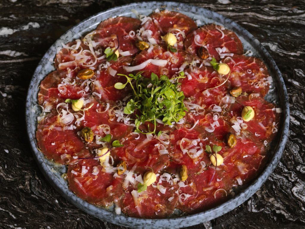 El restaurant L’Olivé (Balmes, 47. Barcelona. www.restaurantlolive,com) moderniza espacios y actualiza platos en una reforma integral tras 34 años de servicio ininterrumpido. De verde oliva, el nuevo espacio vuelve a brillar con una gastronomía de incunables adaptados como la escalibada o los morros de bacalao, a los que se han sumado el tartar de lubina o el tataki de atún a la brasa para seguir siendo referencia. En la imagen, el carpaccio de ternera, otra de las novedades.