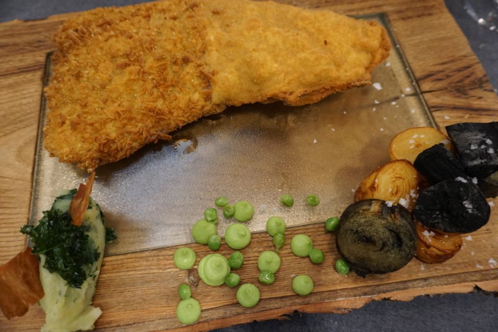 Para el rebozado se utiliza escanda (trigo primitivo de alta montaña) y maíz de grano autóctono. Dos sabores que son muy asturianos. El maíz proviene de un pequeño productor de proximidad y es molido en ingenios hidráulicos. Con las harinas se elabora un pan de escanda y una borona (pan de maíz) que se seca y se ralla. Dos contrastes visuales y de sabores.