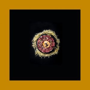 -Se sazona con sal, pimienta y tabasco al gusto, y se moldea en forma cilíndrica sobre la que se coloca una yema de huevo de corral, que mezclará con la carne el comensal.