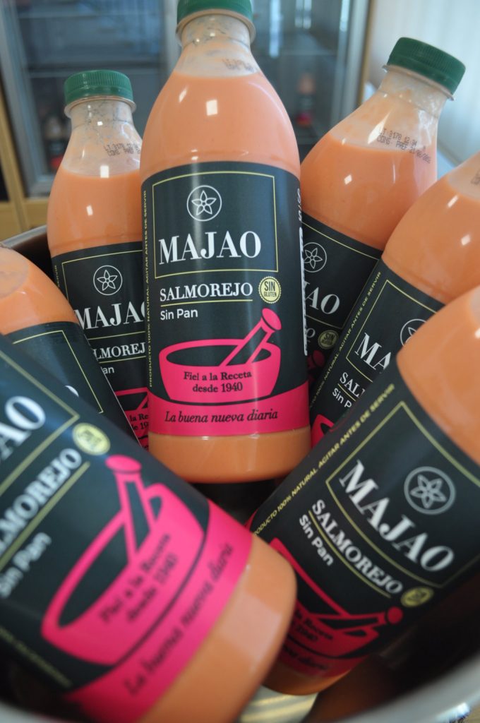 Majao lanza al mercado su salmorejo sin pan, con un sabor intenso y una textura deliciosa, ya que al no llevar pan es perfecto para todos aquellos que no pueden o no quieren tomar gluten. Majao también elabora el gazpacho con más historia de cuantos se hacen en nuestro país, fue en 1982 la primera vez que Majao puso su gazpacho y su salmorejo dentro de una botella. Se presenta en diferentes formatos: de 1 litro y 33 cls.