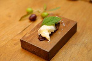 en salmuera y pollo asado, cordero con kambu y cogollo y piparra, chocolate con miso y trufa, y pantxineta de zanahoria. Daisuke Nomura propuso una combinación de sushi nigiri de pimiento y rollo de setas fritas y un frito ligero de vegetales de cinco colores en salsa rica de umami. Y Seamus Mullen, sardinas ligeramente confitadas en aceite de oliva con piñones y kumquot, y setas salvajes con huevo de corral y lardo ibérico.