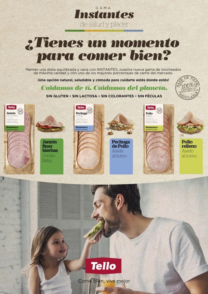 La compañía cárnica Grupo Tello Alimentación lanza “Instantes”, una nueva gama de loncheados cocidos elaborada con materias primas de máxima calidad rigurosamente seleccionadas. Su elevado porcentaje de carne y un envase sostenible de papel hacen de esta nueva gama un producto único, y listo para disfrutar en cualquier momento y lugar gracias a su formato on-the-go de 80gr.