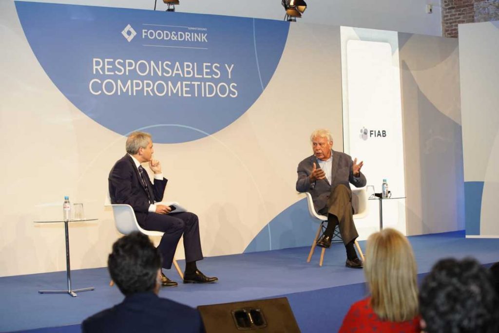 Luis Planas, ministro de Agricultura, Pesca y Alimentación, destaca en el evento Food& Drink Summit a la industria de alimentación y bebidas como un sector clave en términos de competitividad, sostenibilidad y vertebración del territorio. La vicepresidenta segunda y ministra de Asuntos Económicos y Transformación Digital, Nadia Calviño, ha identificado al sector de alimentación y bebidas como uno de los motores de crecimiento de Europa de los próximos años. El evento ha contado con la participación del expresidente Felipe González (en la imagen); el periodista Vicente Vallés; el chef Joan Roca; Laura González-Molero, presidenta de la APD; Javier Vello, socio de EY; y el humorista Carlos Latre. FIAB ha reconocido el esfuerzo y el compromiso por el sector de las exministras Elena Espinosa e Isabel García Tejerina; el empresario Tomás Fuertes; el periodista José Ribagorda; y la catedrática en Nutrición y Ciencia de los Alimentos, Montaña Cámara.