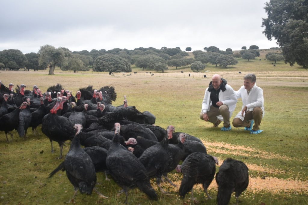 Como ha explicado el consejero, “este proyecto, recién iniciado, con unos 300 ejemplares, incluye tres importantes novedades: los pavos son de raza ibérica, la crianza se hace en semilibertad y su alimentación es totalmente ecológica con una dieta a base de saltamontes y grillos en verano y de bellotas en invierno”.